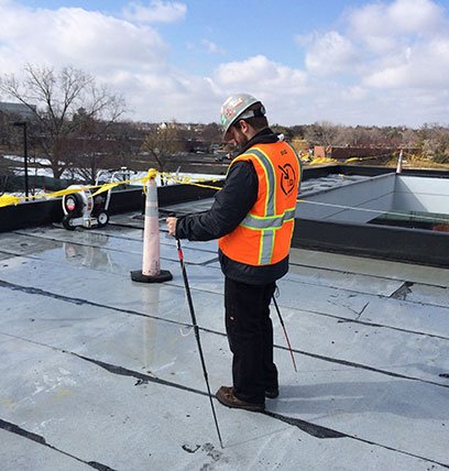 The number one litigated construction trade in the nation is roofing and waterproofing. Now with the emergence of vegetated roofing as a more commonplace commercial application, the potential liabilities have been exacerbated through the installation of overburden on roofing/waterproofing materials. The use of water tests and thermal imaging on these covered and constantly moist conditions are no longer effective methods in determining the location of a roof leak or breach. Leak Detection is the answer to minimizing your exposure to potential building damage, reduced employee productivity and provides the peace of mind that if you have a leak that it will be resolved in a quick and efficient manner. We offer both reactive and proactive systems that will pin point any leak as close as to 2” from the source. We recommend leak detection solutions to all of our blue and vegetative roofing clients. Additionally, it is a standard requirement to receive any Hanging Gardens blue or vegetative roofing warranty. We too understand the necessity to limit our own liabilities.